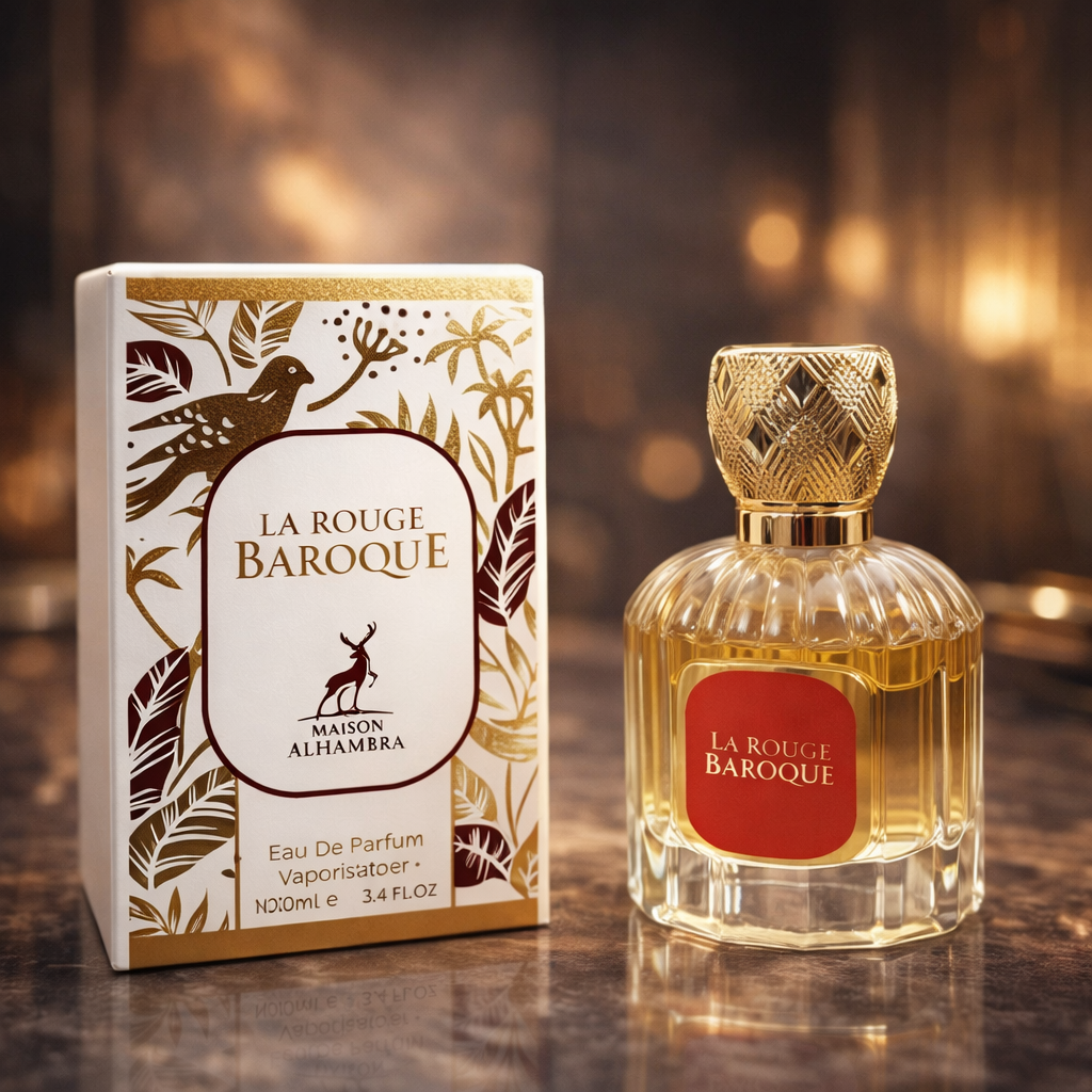 ادکلن یونیسکس الحمبرا مدل Baroque La Rouge – الهامگرفته از Baccarat Rouge 540 (نسخه سفید) 🤍✨ (حجم 100 میل)